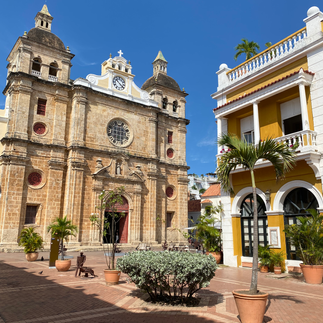 The other distinctive Cathedral in Cartagena is the Cathedral de Santa Catalina de Alejandria located just off Simon Bolivar Plaza in the middle of the historic center. It was built from 1577 to 1612, construction was delayed due to an attacked from English explorer and privateer, also known for his circumnavigation of the earth, Sir Francis Drake in 1586. It is the episcopal see of the Archbishop of Cartagena the Indies, one of the oldest episcopal sees in the Americas.